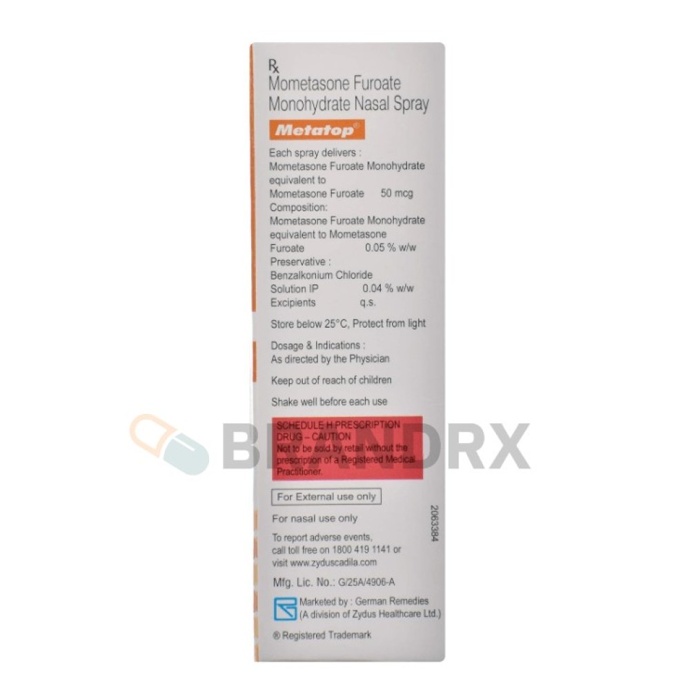 | Bivirkninger | Irritation og svie i næsen, hovedpine, faryngitis, øget risiko for infektion, potentielle systemiske effekter ved langvarig brug |